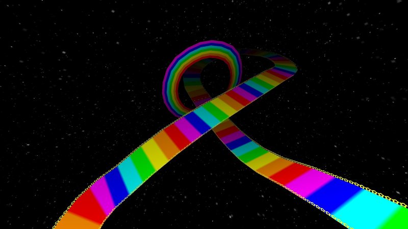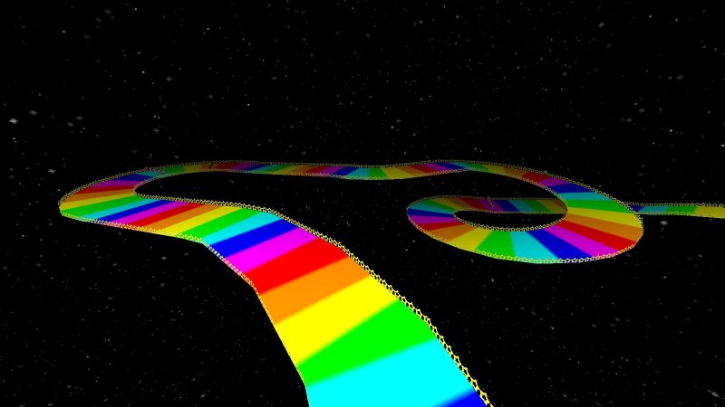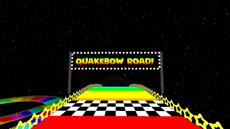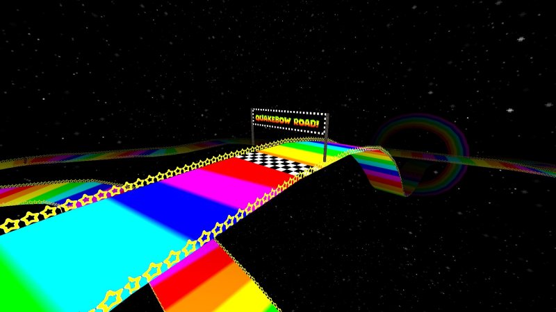 The theme for this jam was to 'remix a multiplayer map from another game'. Thinking most people would submit entries from other shooter games I thought I'd have a bit of fun with it, and picked the notorious Rainbow Road end level from Mario Kart 64, condensed down to fit on the standard Quake grid and complete with a few custom sounds from the game.