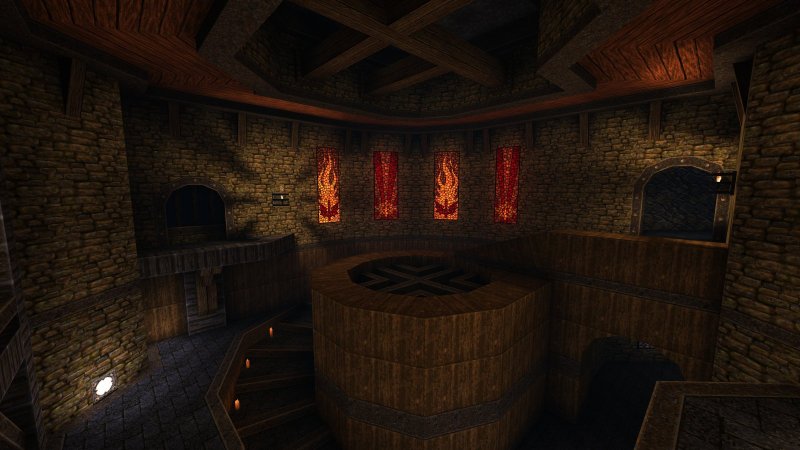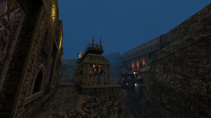 The key feature of this e2m4 remake is that I replaced the short plat ride over the modestly-sized slime pit, with an epic cable car ride through a stupidly large canyon. I'd always wanted to do something like this ever since seeing a cable car on the Prefab Warehouse (an ancient site hosted on Planetquake) and seeing the concept executed very nicely in the Madfox map Phantom Pholly. To break up the journey there is a lot of map that wasn't there before.
